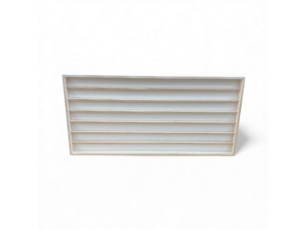 011-115 VITRINA 115cm x 55cm x 6,3cm, 8 podlaží po 5,4cm, 4cm využitelná hloubka