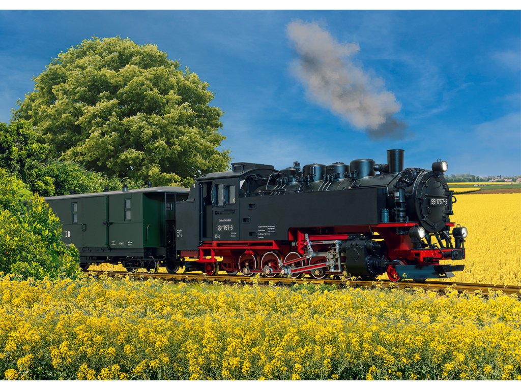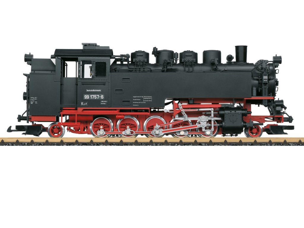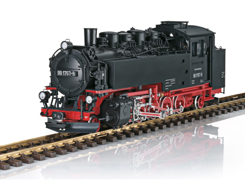 Model úzkorozchodné parní lokomotivy 99 1757-6 (lokomotiva řady 99.73-76, dříve saská VII K) německé Říšské dráhy (DR), věrně natřená a popsaná podle éry IV. Nejvýraznějším rysem této éry je změna číslování lokomotiv v důsledku zavedení elektronického zpracování dat na železnicích, kdy za pomlčkou „pořadového čísla lokomotivy“ následuje tzv. samokontrolní číslice. V naší lokomotivě je to „-6“. Dalším zřejmým stylistickým rysem éry IV jsou šedobílé „výstražné rohy“ na předních oknech kabiny strojvedoucího.