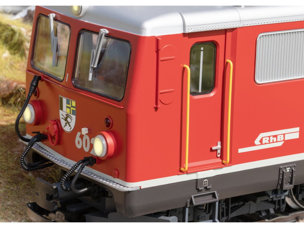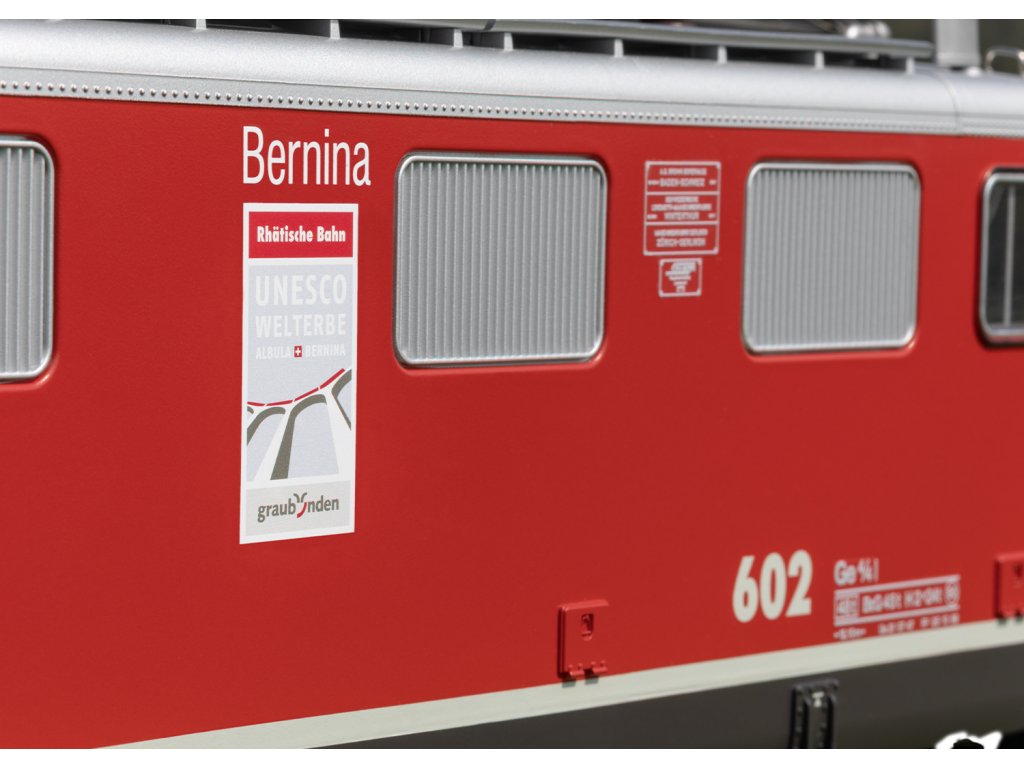 Model elektrické lokomotivy třídy Ge 4/4 I s číslem trati 602 Rhétské dráhy. Replika přestavěné lokomotivy s novou přední částí. Autentické červené nátěrové schéma a nápisy z 6. éry. Čtyři dvojkolí poháněná dvěma výkonnými motory Bühler s kuličkovými ložisky. Vybavena dekodérem mfx/DCC s řadou světelných a zvukových funkcí. Jednoramenný pantograf je poháněn motorem a lze jej digitálně ovládat. Střešní vybavení je autentické. Délka přes nárazníky: 54 cm.