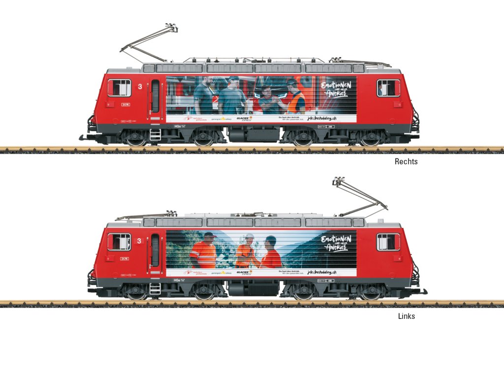 Model elektrické lokomotivy č. 3 "DOM" (řada HGe 4/4 II) dráhy Matterhorn-Gotthard (MGB) v jejím současném provozu. Barevné schéma a písmo věrné původnímu provedení dle 6. éry. Speciální barevné schéma se dvěma různými reklamami zaměstnanců na bocích lokomotivy. Všechna čtyři dvojkolí a dva trakční podvozky jsou poháněny dvěma výkonnými motory s kuličkovými ložisky. Vybaven dekodérem mfx/DCC s řadou světelných a zvukových funkcí. Pantografy poháněné motorem s digitálním ovládáním. Délka přes nárazníky: 67 cm.