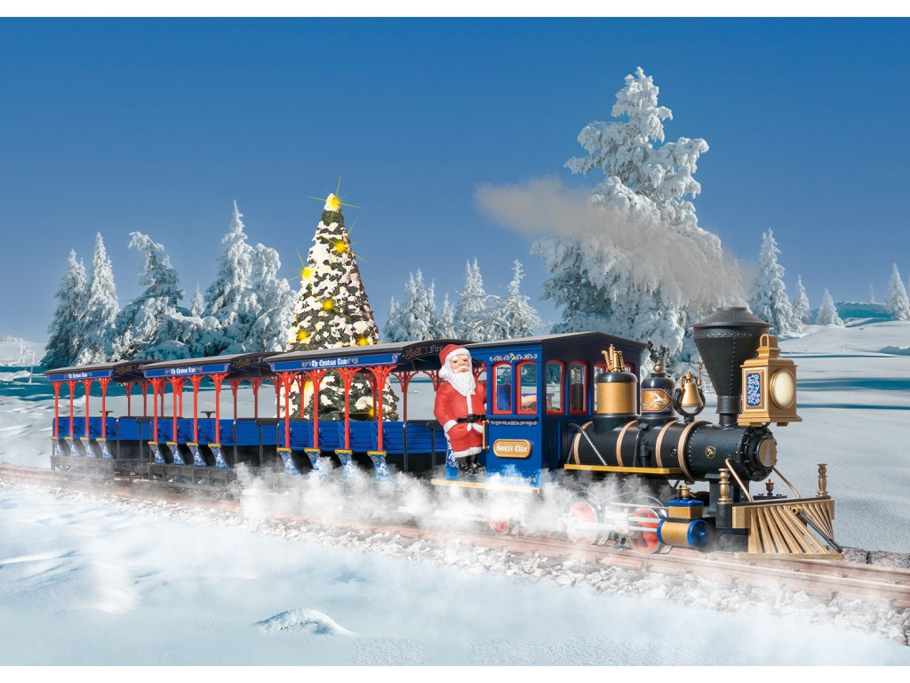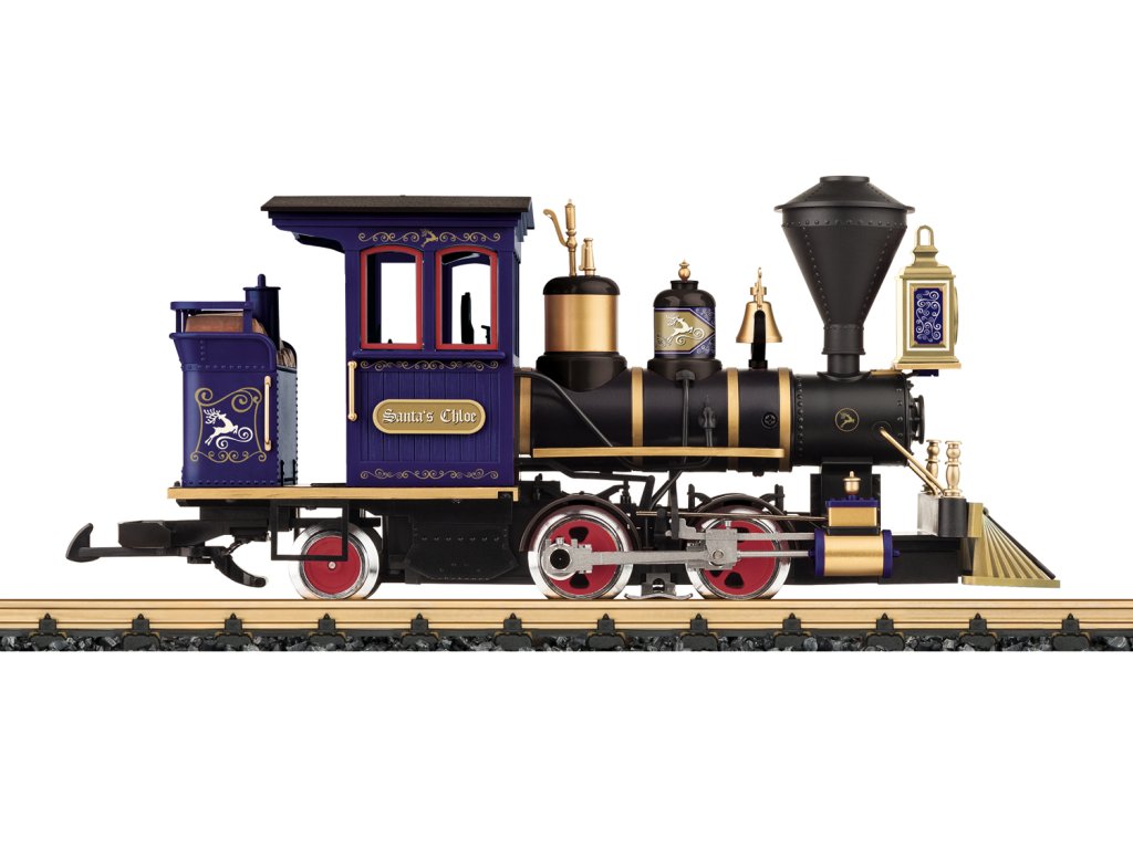 Model úzkorozchodné lokomotivy "CHLOE". Detailně zpracovaný vánoční nápis s vánočními motivy. Obě hnací kola pohání výkonný motor s kuličkovými ložisky. Osvětlené světlomety. Součástí je figurka řidiče Santa Clause.