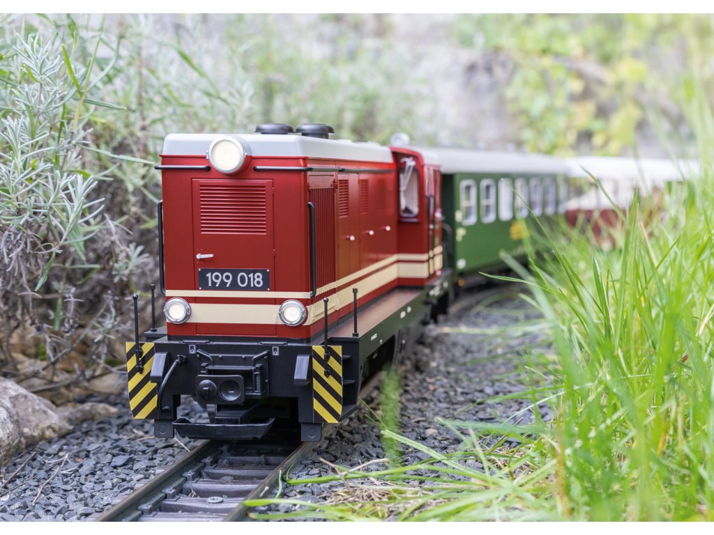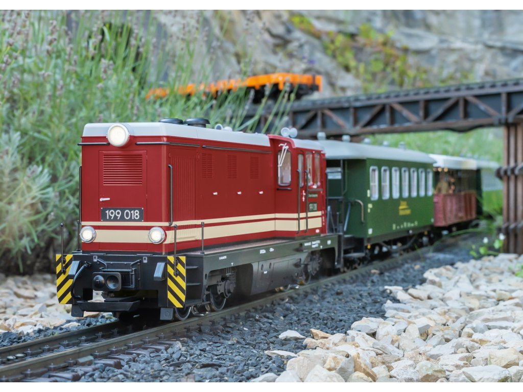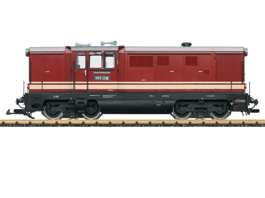 Dieselová lokomotiva 199 018 společnosti SOEG v současném provedení Era VI. Detailní model s mnoha samostatně aplikovanými díly. Otevírací dveře kabiny. Oba podvozky jsou poháněné, možný minimální poloměr R1 / 600 mm. Součástí je dekodér mfx/DCC s řadou světelných a zvukových funkcí a standardně je instalován zásobník energie. Směrové světlomety se střídají mezi bílou a červenou barvou a lze je digitálně ovládat. Kabina je vybavena vnitřním vybavením a osvětlením. Součástí je i Nicole, strojvedoucí žitavské lokomotivy. Délka přes nárazníky: 52 cm.