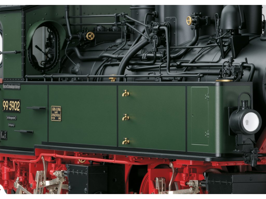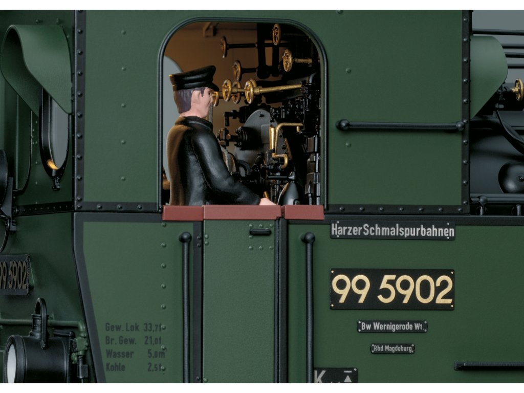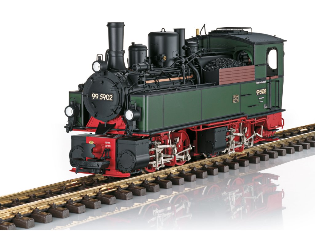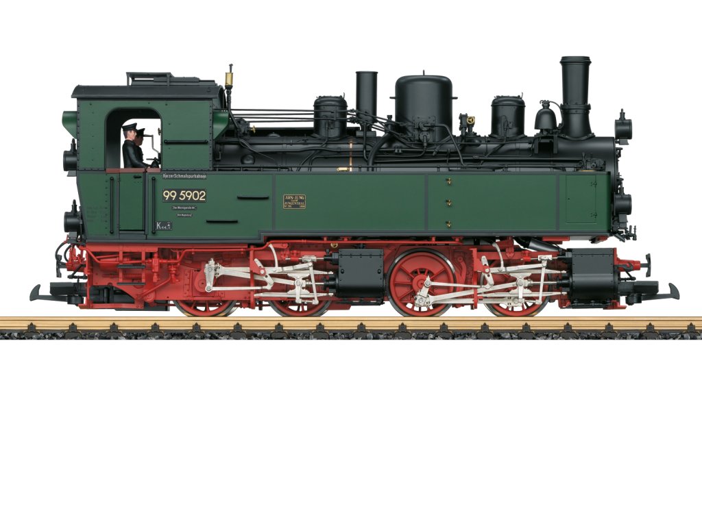 Model parní lokomotivy 99 5902 úzkorozchodné železnice Harz. Detailně propracovaný model z těžké kovové konstrukce s řadou samostatně aplikovaných detailů. Poháněna dvěma vysoce výkonnými motory, všechna hnací kola jsou poháněna spojkami. Dveře kabiny a kouřovodu se otevírají. Detailně propracovaný podvozek typu Mallet se vyznačuje mnoha detaily, včetně kompletního spojení a pohonu mazacího čerpadla. Lokomotiva se vyznačuje věrným zeleno-černo-červeným barevným schématem a nápisy z éry VI, stejně jako dnes na HSB. Je vybavena dekodérem mfx/DCC s řadou světelných a zvukových funkcí, včetně světlometů, osvětlení kabiny, zvuků jízdy, píšťalky a zvonku aktivovaných jazýčkovým spínačem a mnoha dalšími. Zvuky jízdy fungují také v analogovém režimu. Vestavěný generátor kouře s párou synchronizovanou s koly, stejně jako pára z válců a výstřik páry z píšťalky při aktivaci, je vybaven digitálně ovládanými spojkami systému LGB na obou koncích; ty lze vyjmout. Pružinové nárazníky. Délka přes nárazníky 40 cm.