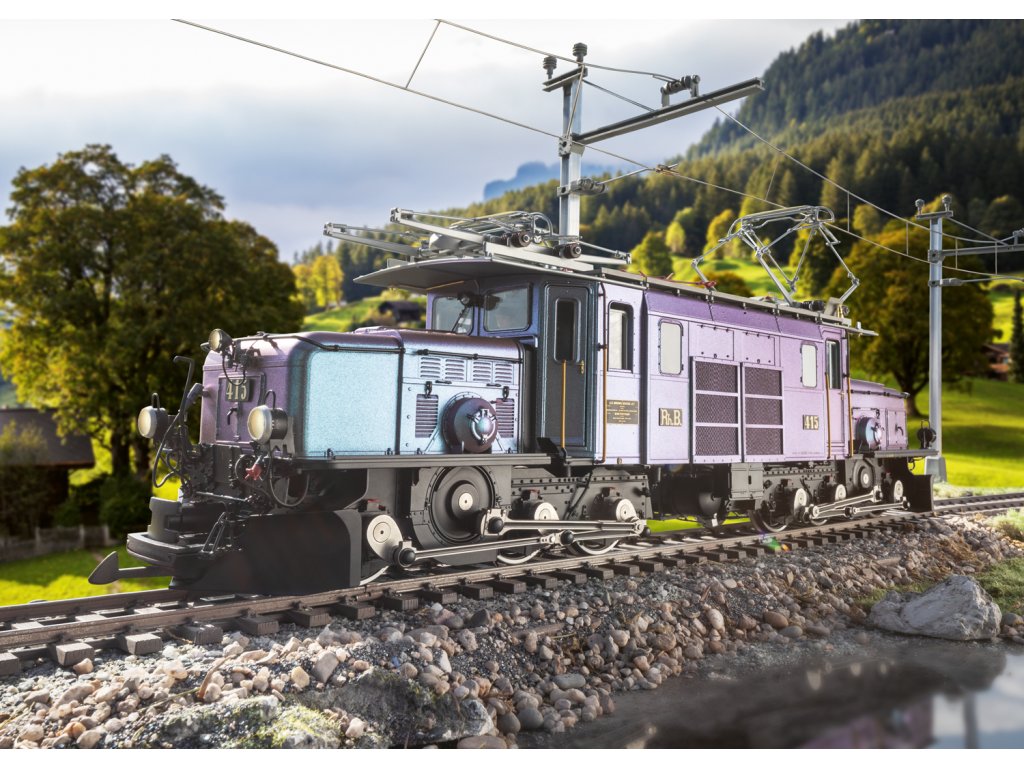 Model elektrické lokomotivy Ge 6/6 I od RhB, legendárního „Krokodýla“. Detailně zpracovaný model z těžké kovové konstrukce s řadou samostatně aplikovaných detailů. Speciální barevné schéma a písmo v barvách Era VI, číslo silnice 415, tak jak je lokomotiva dodnes v provozu. Pohon zajišťují dva výkonné motory na obou podvozcích. Vybavena dekodérem mfx/DCC s řadou světelných a zvukových funkcí, včetně světlometů, osvětlení kabiny, zvuků jízdy, píšťalky aktivované jazýčkovým spínačem a mnoha dalších. Zvuky jízdy fungují i v analogovém provozu. Elektrické pantografy lze zvedat a spouštět v digitálním režimu a spřáhla lze také ovládat dálkově v digitálním režimu. Mnoho jemných detailů na svršku a podvozku, kabiny strojvedoucího s kompletním vnitřním vybavením a otevírací dveře kabiny strojvedoucího. Součástí dodávky jsou dva ochranné kryty kolejnic bez výřezu pro spřáhlo systému LGB; ty lze namontovat na jednu nebo obě strany po demontáži spřáhla s motorovým pohonem. Minimální poloměr pojezdu: 600 mm. Délka přes nárazníky: 60 cm.