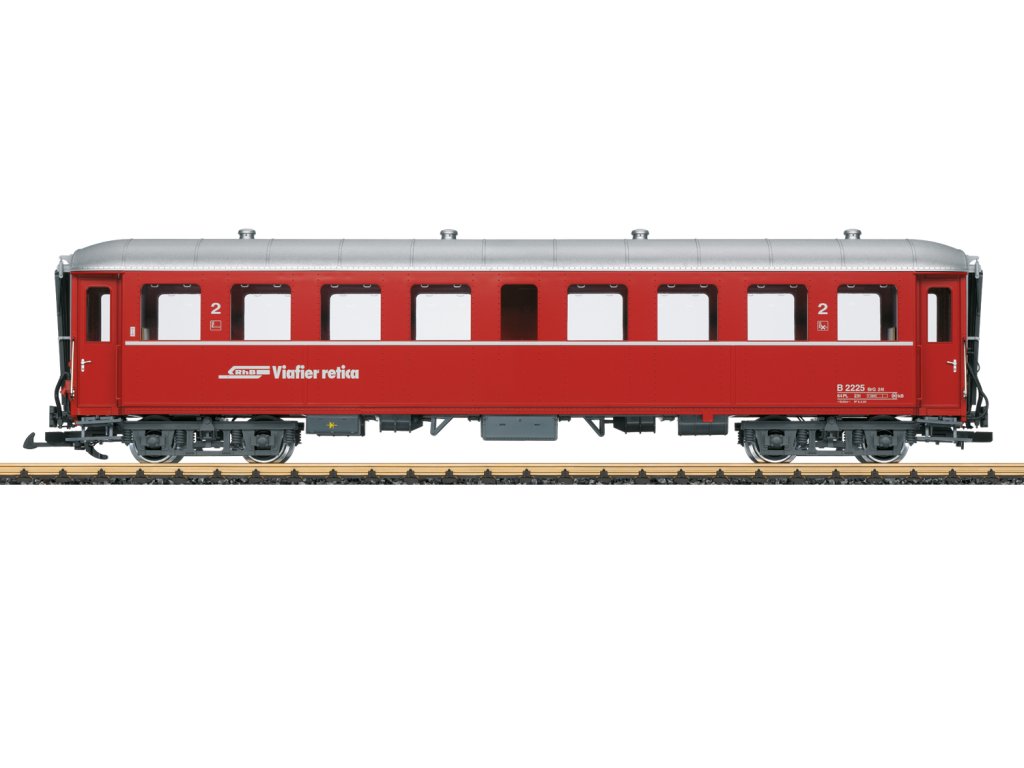 Model rychlíkového vagónu druhé třídy RhB (Rhétské dráhy). Autentické barevné schéma a nápisy z IV. éry. LED vnitřní osvětlení ve standardní výbavě. Délka přes nárazníky 66 cm.
