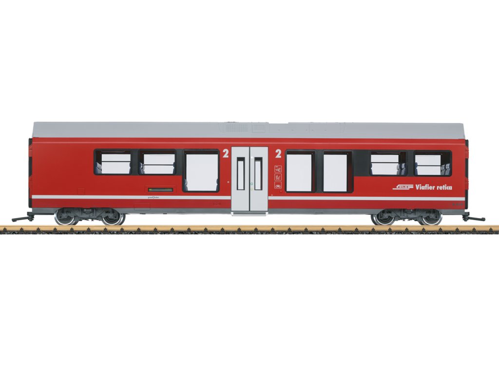 Model druhého mezilehlého vozu soupravy řady ABe 4/16 "Capricorn" od RhB. Barevné schéma a písmo věrné originálu z éry VI. Vybaveno vnitřním osvětlením a v digitálním režimu přepínatelným osvětlením cílové stanice, které je ovládáno z hnacího vozu. Nepřetržité elektrické připojení umožňuje použití vozu v soupravě mezi hnacím a řídícím vozem; součástí dodávky je 11pinový propojovací kabel. Nastavitelná speciální spojka umožňuje nastavení rozteče vozů na minimální poloměr jízdy. Délka: 77 cm.