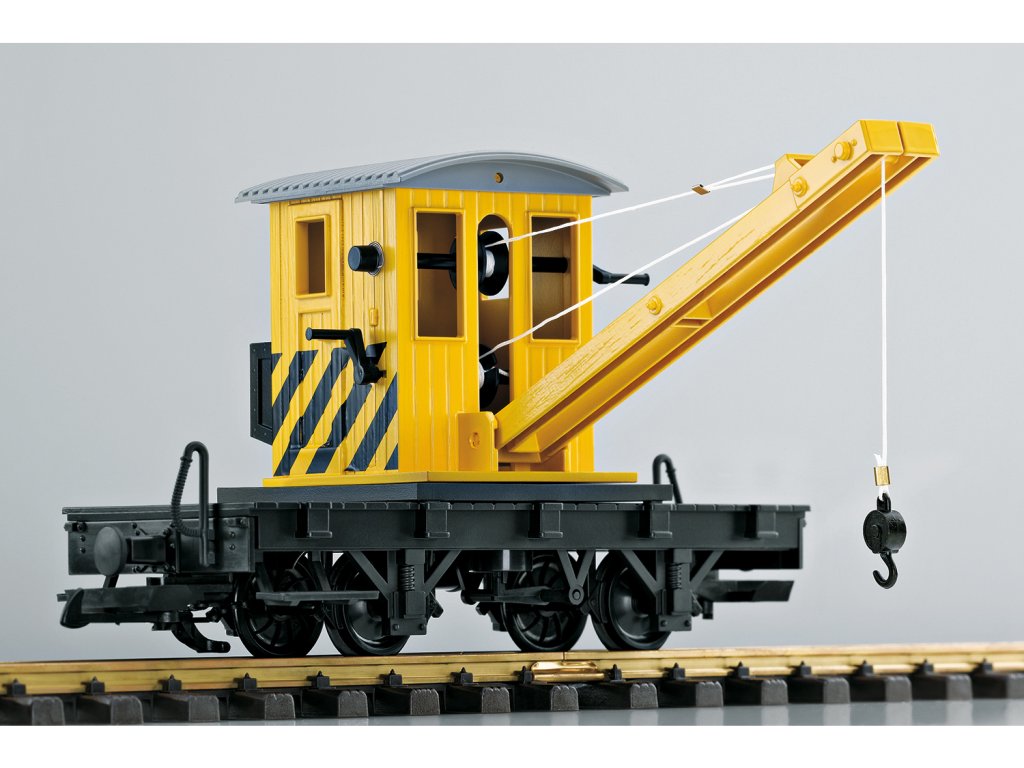 Model jeřábového vozu, používaného především pro stavební práce na železničních zařízeních a tratích. Rameno a hák jeřábu lze zvedat a spouštět pomocí ručních klik. Jeřábové příslušenství je otočné. Délka přes nárazníky 25 cm.