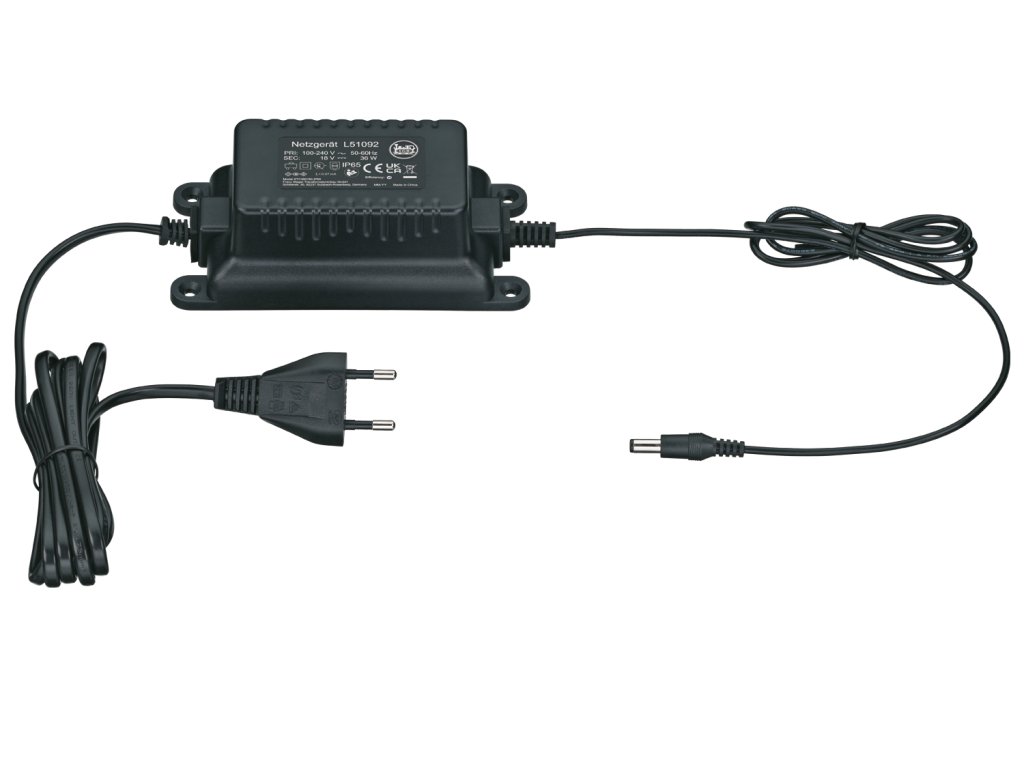 Spínaný zdroj s ochranou proti stříkající vodě (IP 65) pro napájení pohonné jednotky 51099. Připojovací kabel k síti s eurozástrčkou.