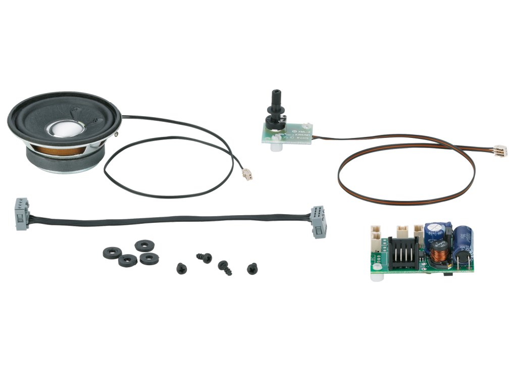 Sada pro dodatečnou úpravu zvuku specifická pro dané vozidlo pro modely lokomotiv řady 2x52x vybavené dekodérem MZS. Tato sada pro dodatečnou úpravu přináší do vaší lokomotivy LGB prototypický zvuk naftového motoru. Obsahuje následující digitální elektronické zvuky: naftový motor, elektrické trakční motory, klakson a píšťalka (před odjezdem na železničních přejezdech), hlášení průvodčího (s MZS), zvuky brzd (zatahování a uvolňování brzd), zvuky při stání (volnoběh a přetlakový ventil při stání v provozu MZS), dálkové ovládání zvukových funkcí (se systémem MZS) a magneticky ovládaná aktivace píšťalky a klaksonu (magnet není součástí dodávky). Sada obsahuje kompletní konverzní sadu se všemi potřebnými díly, která se skládá z: zvukového modulu LGB s ovládáním hlasitosti, připojovacího kabelu, vysoce kvalitního reproduktoru, kompletního montážního materiálu, návodu k instalaci a návodu k obsluze.