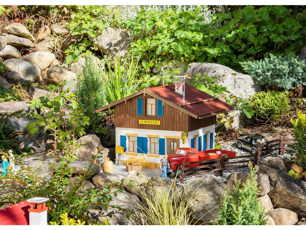 Model venkovské budovy se světlou omítnutou fasádou, dřevěným obložením v podkroví a zadním balkonem. V přízemí se nachází malá pošta. Součástí jsou typické poštovní detaily, jako je venkovní značení, poštovní schránka se stojanem, služební kolo a základní deska. Samostatně je k dispozici odpovídající poštovní vozidlo „Goli“ (číslo položky 331617).