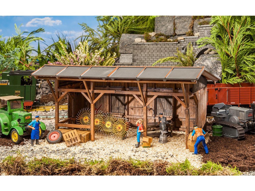 Všestranné využití. Velký, polootevřený přístřešek s povrchovou úpravou s imitací dřeva pro uložení strojů, vozidel a různého nářadí. Zadní okenice jsou posuvné.
