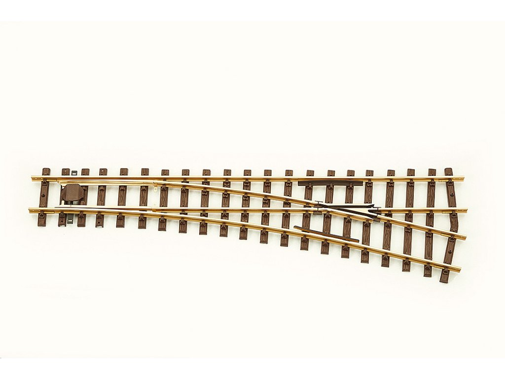 výhybka Radius 2000 mm, délka 600 mm, mosaz 15° pravá